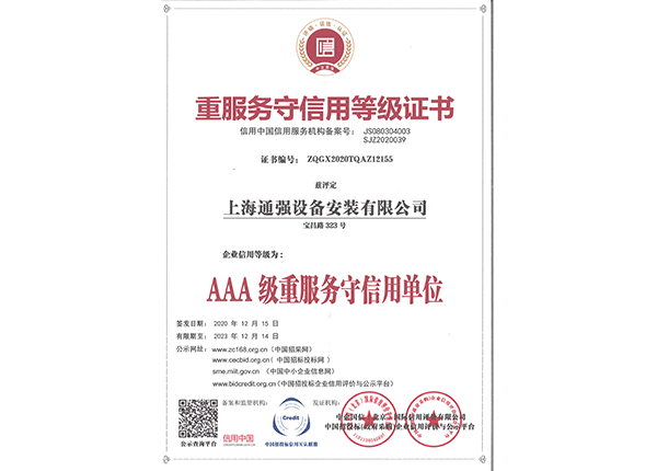 上海通強設(shè)備安裝有限公司注冊資金2000萬元,資產(chǎn)總量為100000萬元的專業(yè)設(shè)備安裝公司,公司專業(yè)從事工業(yè)與民用建筑的設(shè)備安裝、非標(biāo)設(shè)備的制作、鋼結(jié)構(gòu)制作安裝、中央空調(diào)系統(tǒng)的安裝,水電及管道的安裝。經(jīng)過20多年艱苦創(chuàng)業(yè)現(xiàn)已成為一個具有國家二級安裝資質(zhì),獲得上海市“重合同,守信用”的施工單位。